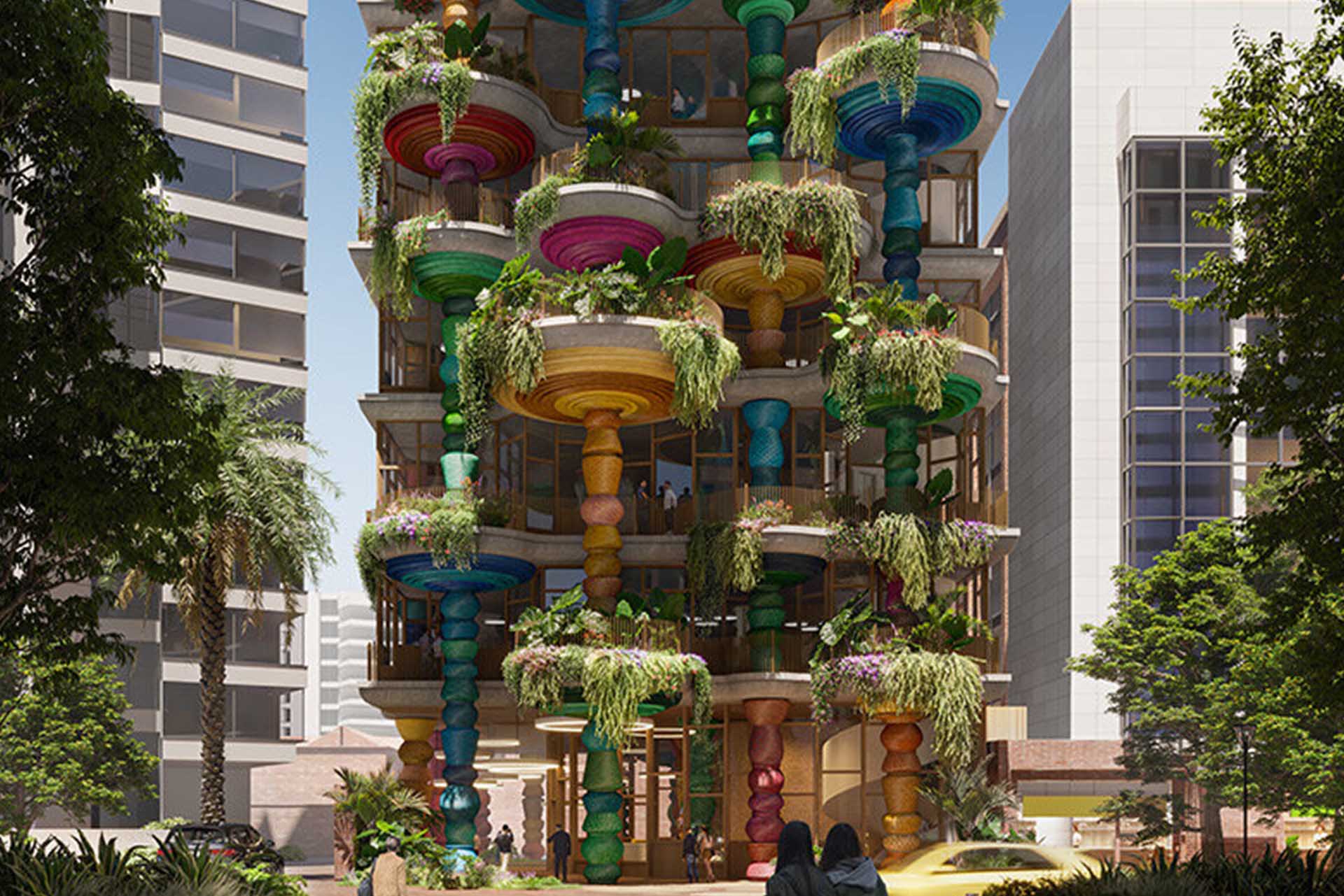 Heatherwick Studio, liderado por Eliot Postma, propone una edificación que busca ser un “oasis comunitario” dentro del campus. Con siete niveles, el proyecto albergará talleres, aulas y espacios de encuentro, conectándose con las prácticas de fabricación (makerspace) de la universidad. Su fachada texturizada, hecha de columnas de colores, hace eco de la tradición artesanal local, integrando un lenguaje arquitectónico que honra las raíces culturales designboom.com.