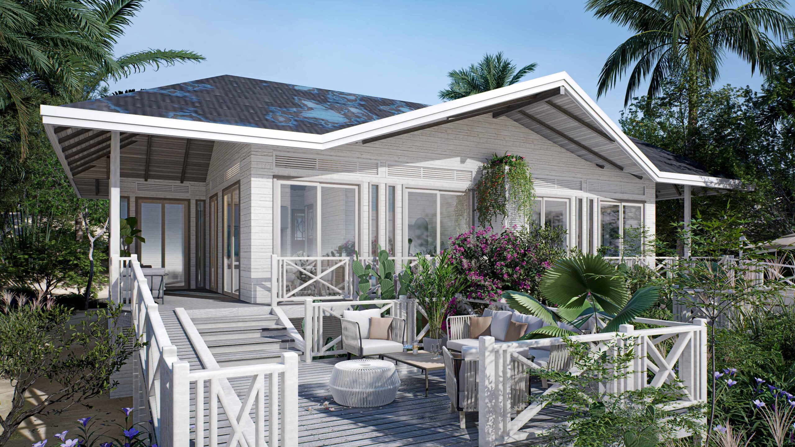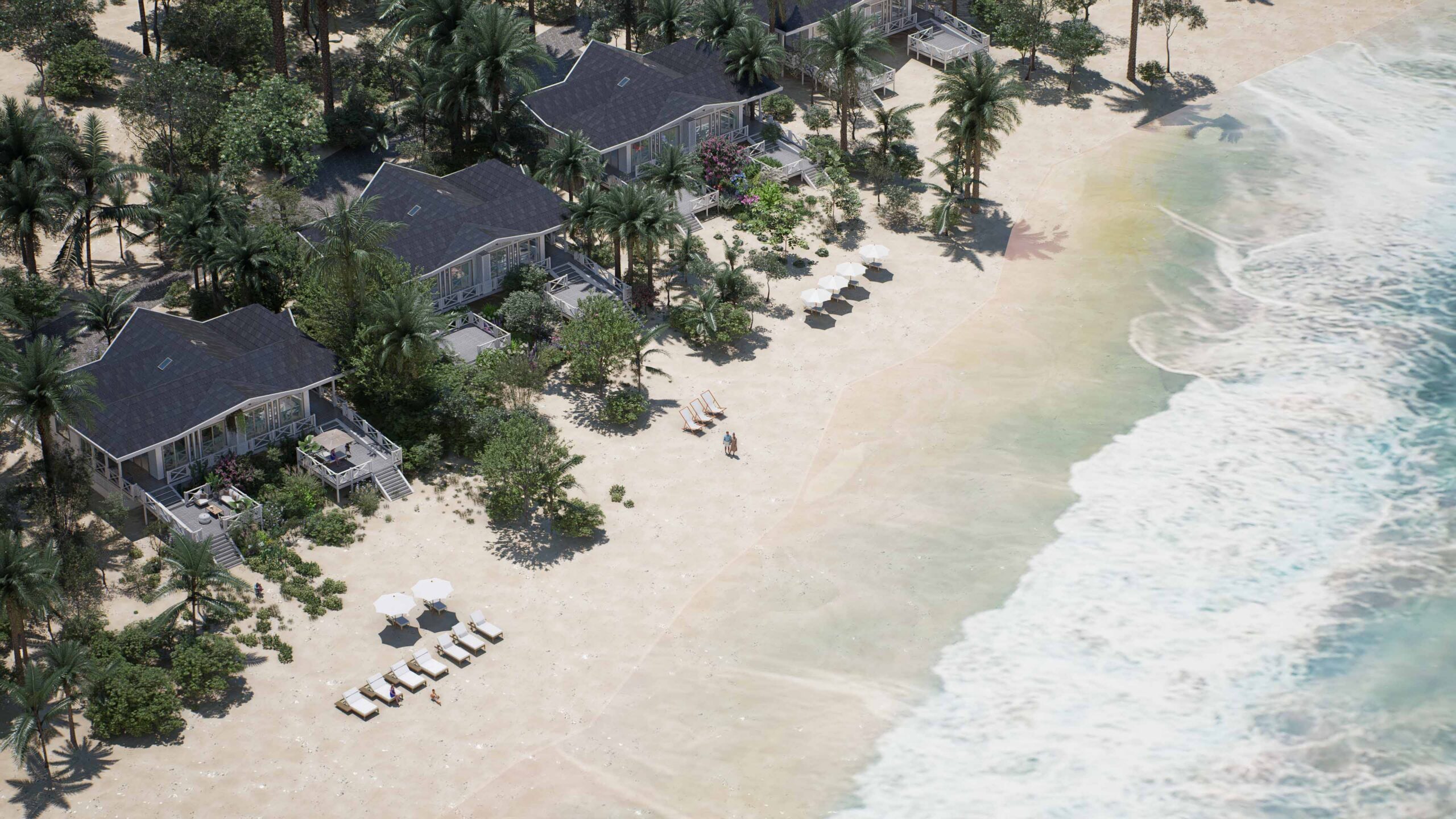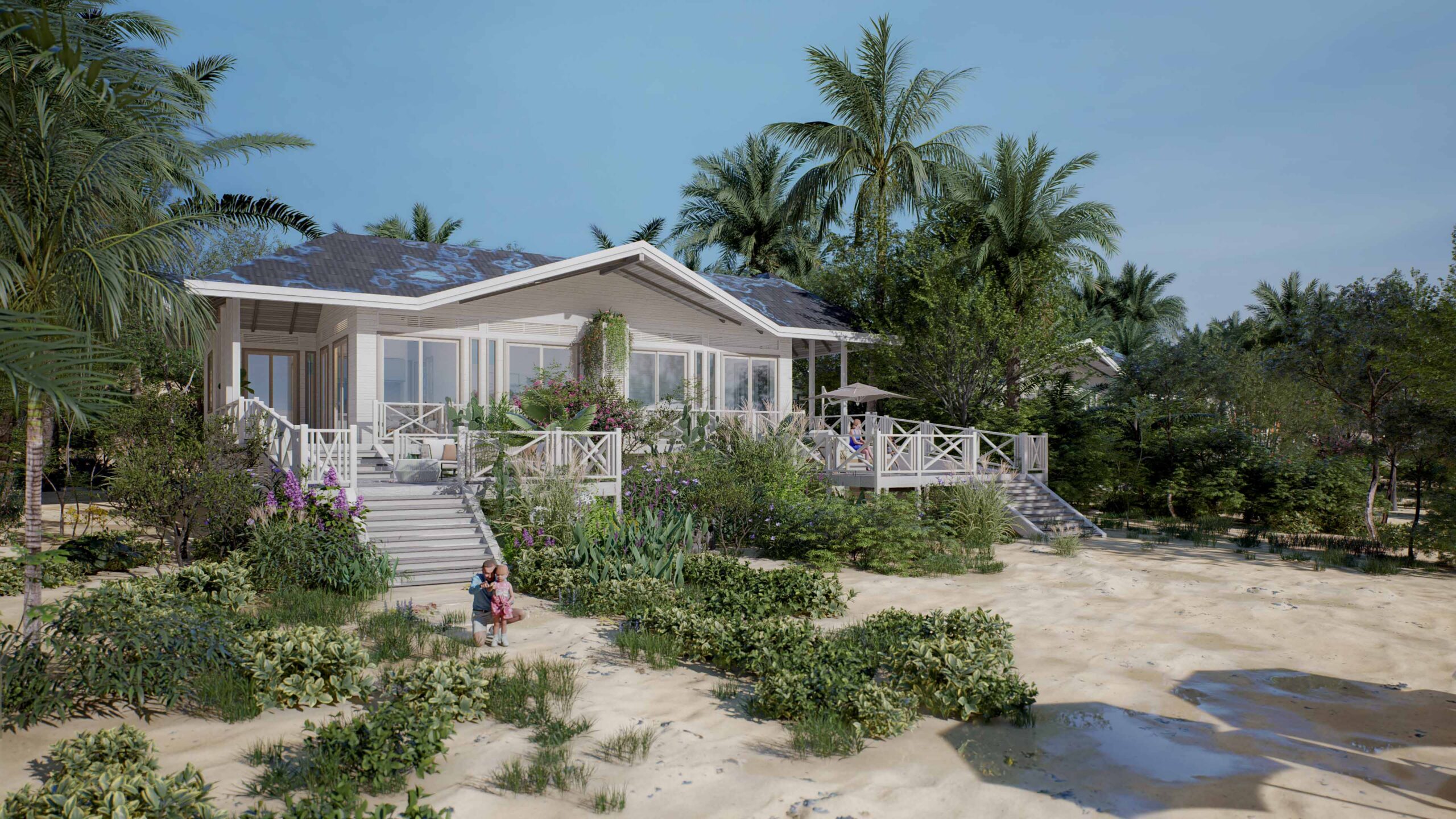 Solicitado por la empresa Áreas Flexibles, este proyecto busca fusionar confort y paisaje. Cada cabaña cuenta con 3 habitaciones y se une lateralmente a otra, dando la apariencia de una sola unidad continua. Su estructura elevada responde a las mareas cambiantes del litoral y proporciona panorámicas privilegiadas hacia el atardecer. El diseño incorpora cubiertas a dos aguas y acabados en madera blanca local, lo que refuerza su identidad costera y su integración al entorno. Estas cabañas representan un equilibrio perfecto entre estilo tropical, funcionalidad y respeto por el lugar.