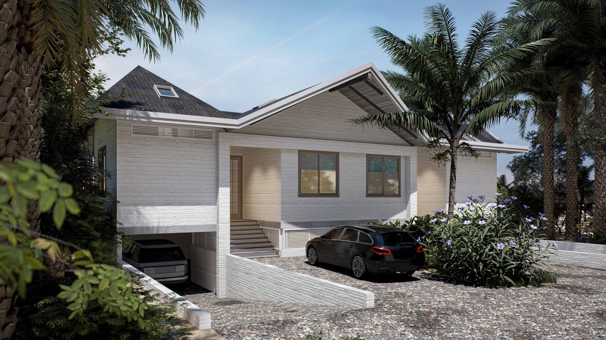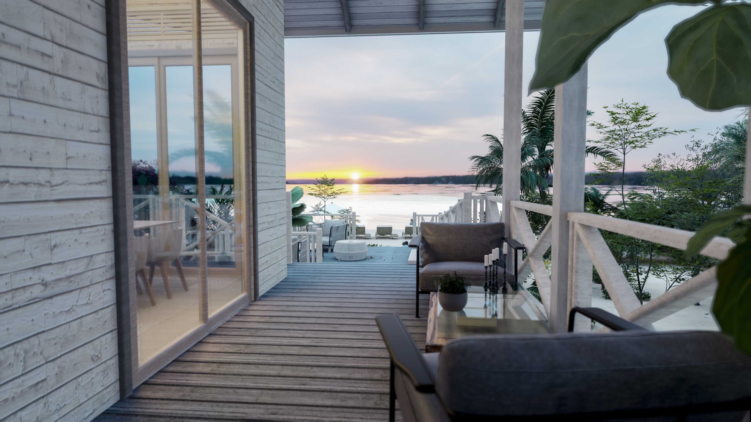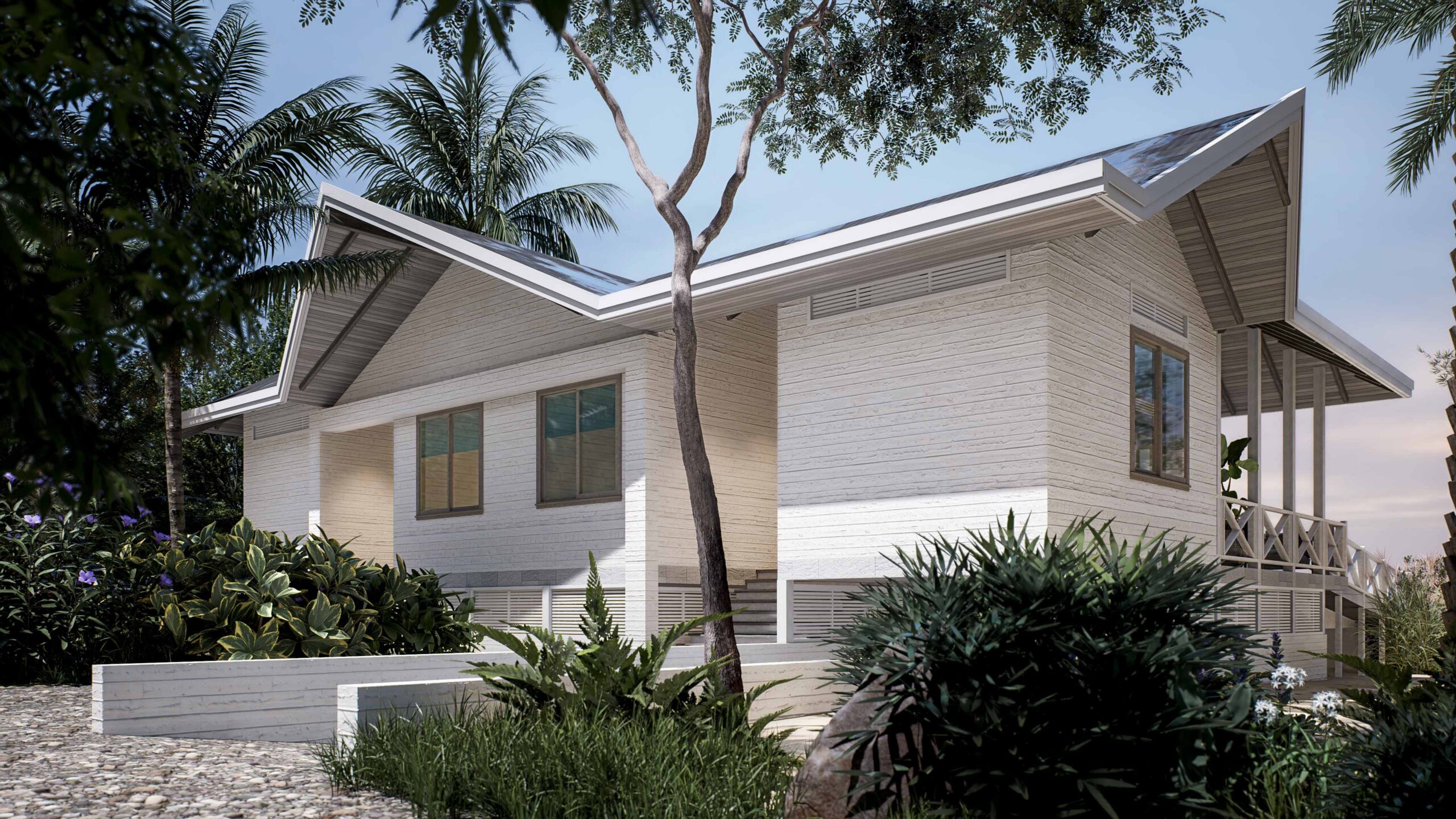 Solicitado por la empresa Áreas Flexibles, este proyecto busca fusionar confort y paisaje. Cada cabaña cuenta con 3 habitaciones y se une lateralmente a otra, dando la apariencia de una sola unidad continua. Su estructura elevada responde a las mareas cambiantes del litoral y proporciona panorámicas privilegiadas hacia el atardecer. El diseño incorpora cubiertas a dos aguas y acabados en madera blanca local, lo que refuerza su identidad costera y su integración al entorno. Estas cabañas representan un equilibrio perfecto entre estilo tropical, funcionalidad y respeto por el lugar.