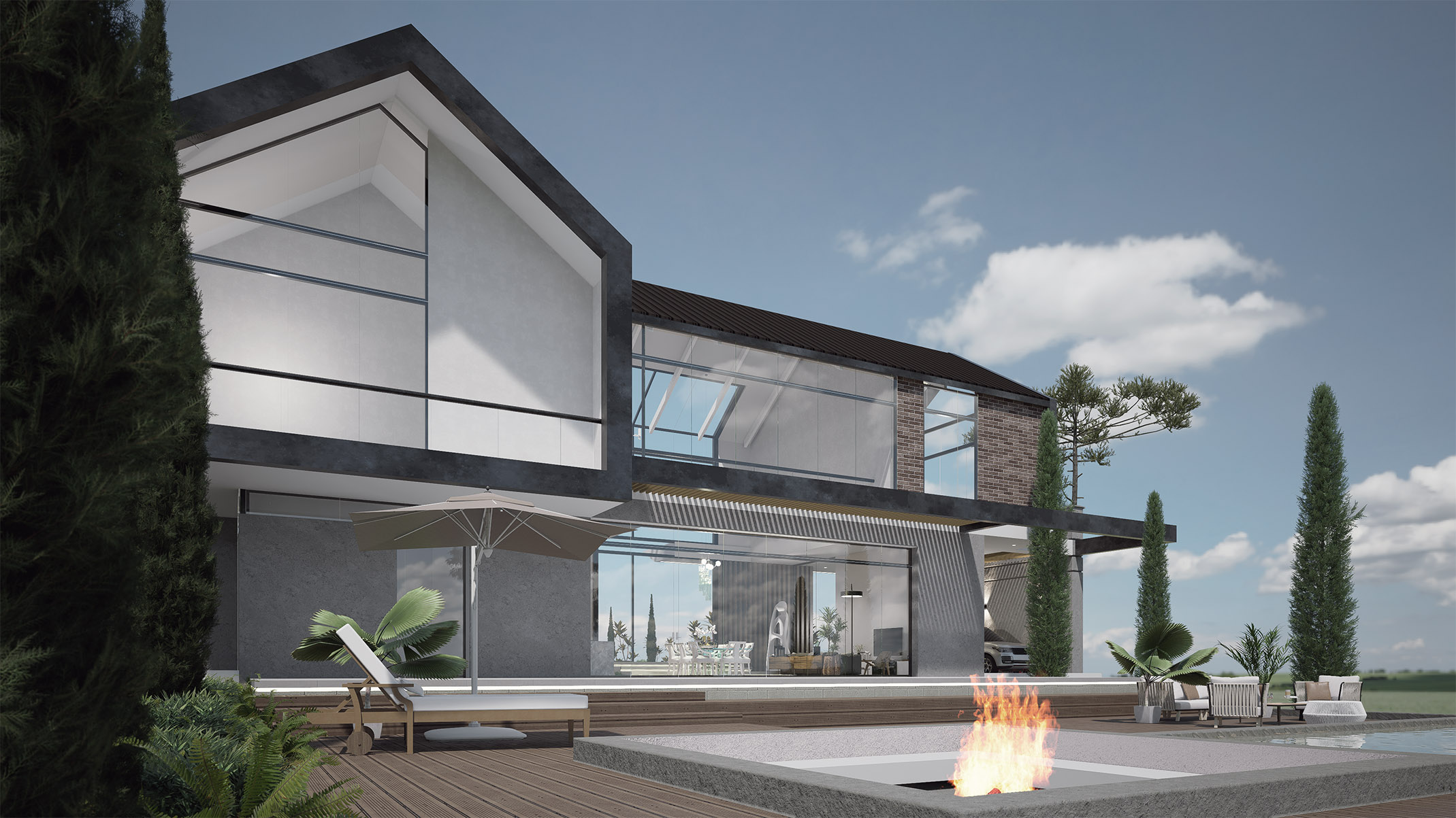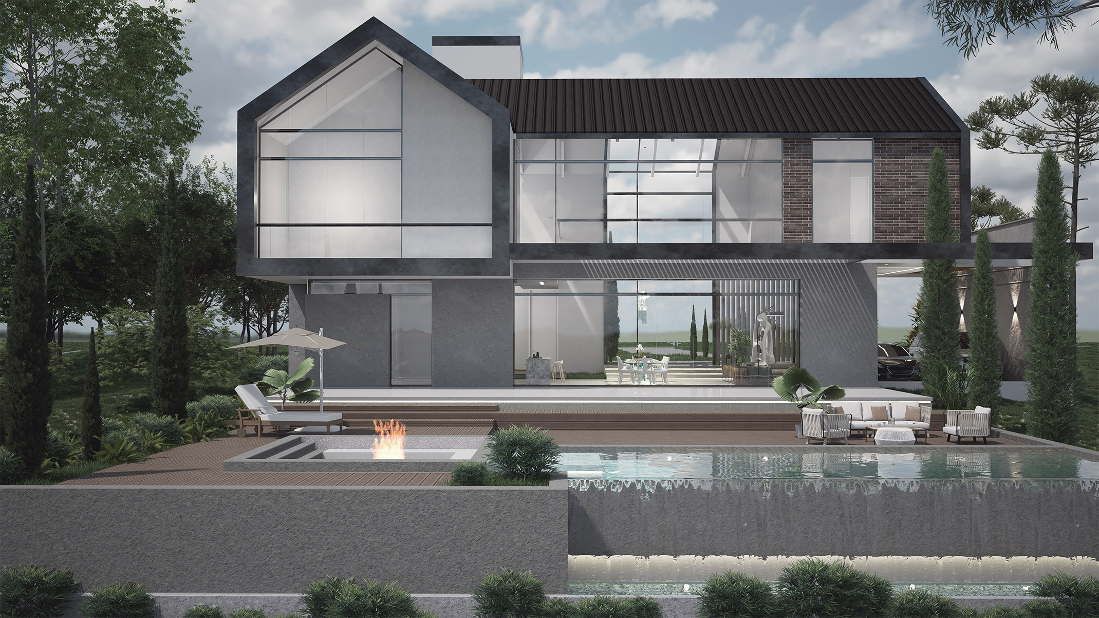 Casa El Santuario se despliega en 345 m² distribuidos con inteligencia en dobles alturas. Dispone de cinco habitaciones, una zona social acompañada de un espejo de agua con cascadas, que en conjunto crean una atmósfera sonora envolvente. En el exterior, una sala semienterrada con fogata ofrece un refugio contemplativo. Los ventanales de gran formato conectan visual y emocionalmente con el entorno. Su diseño audaz permite que el vidrio sea fachada y cubierta a la vez, capturando luz natural durante el día y abriendo el cielo estrellado por la noche.