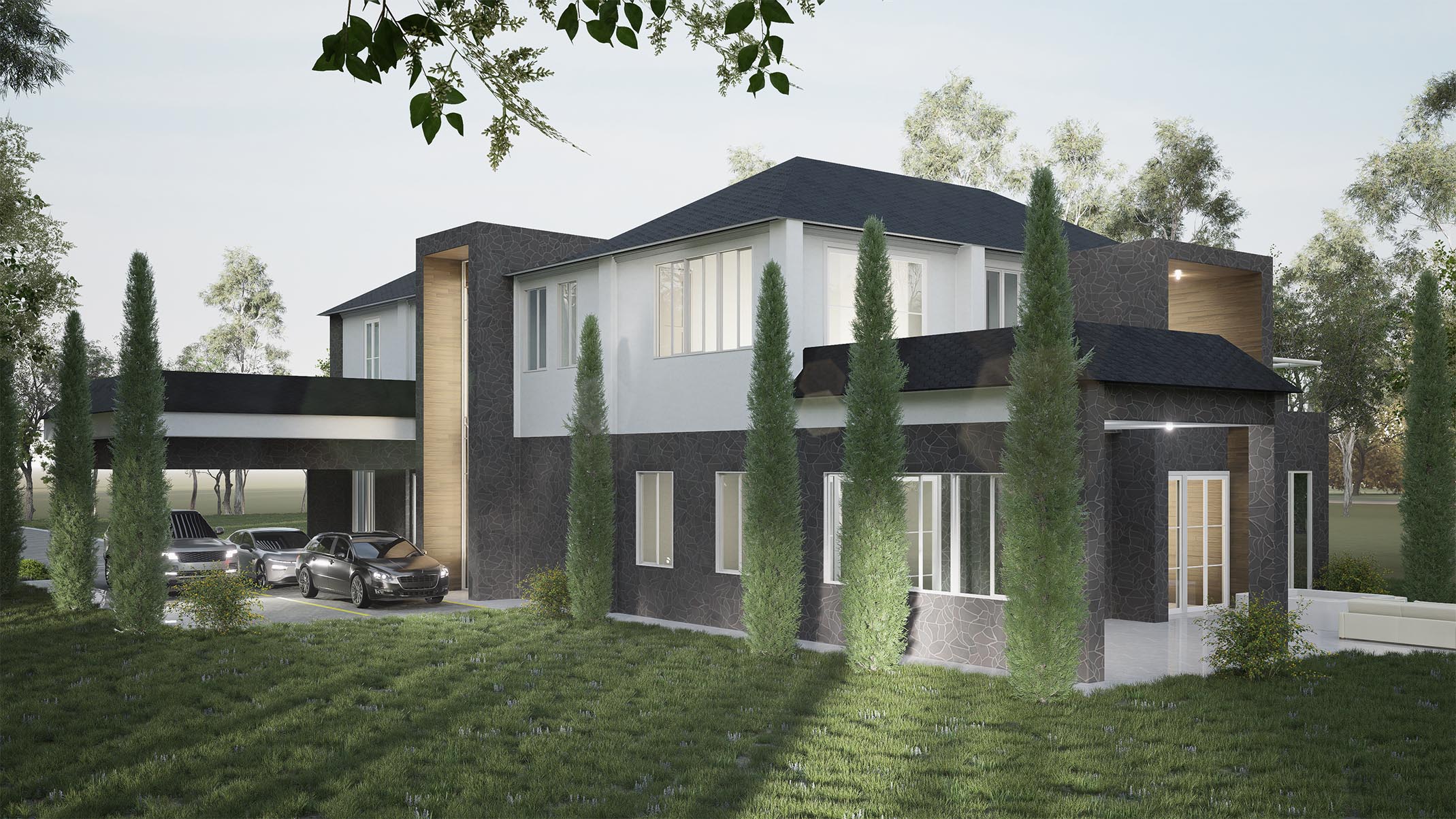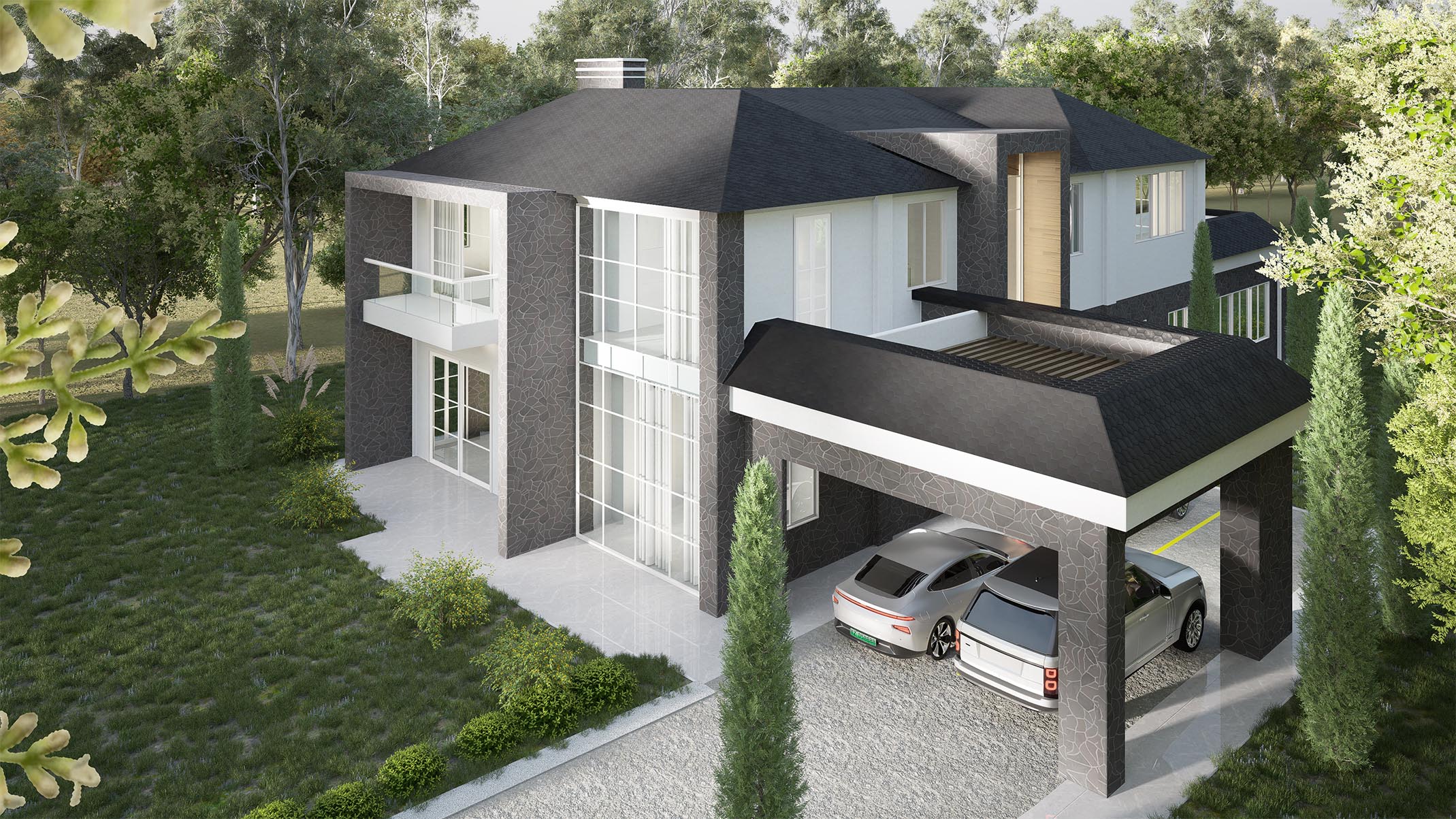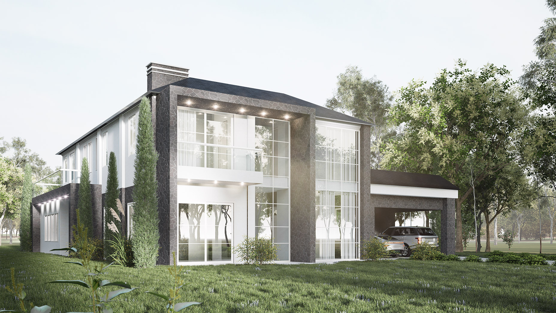 Casa Vilachuaga está diseñada sobre un terreno amplio rodeado de eucaliptos. En el primer nivel se encuentran espacios como una habitación de huéspedes, cinema, despacho, zona de juegos, jacuzzi y un kiosko ideal para el descanso. En el segundo nivel, se distribuyen cuatro habitaciones, terrazas con vistas privilegiadas y un oratorio privado. La fachada se enmarca con piedra negra, acentuando su carácter elegante. Grandes ventanales a doble altura con marcos blancos respetan la estética americana y permiten disfrutar del paisaje de forma imponente. Un diseño que equilibra lujo y naturaleza en perfecta armonía
