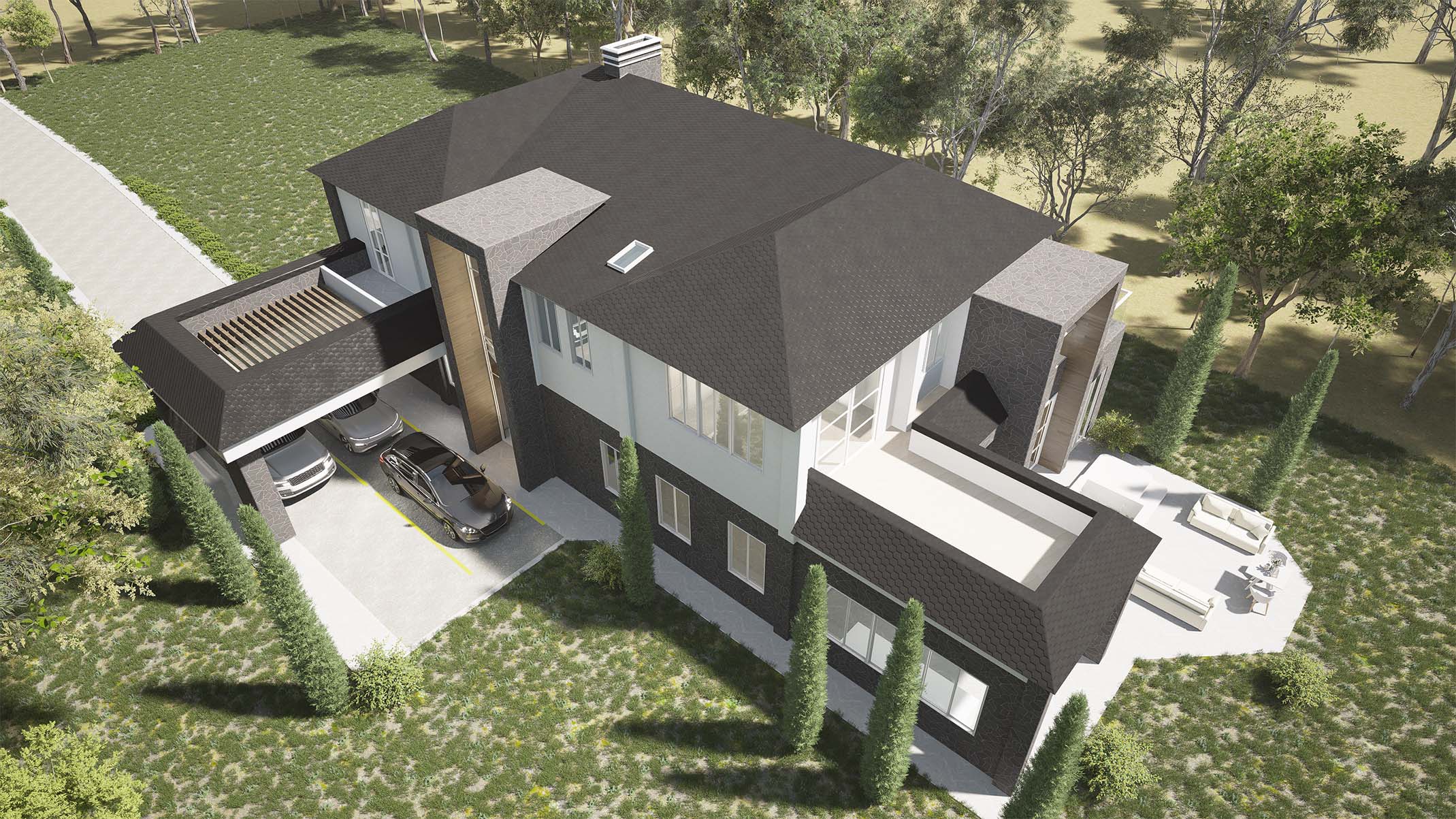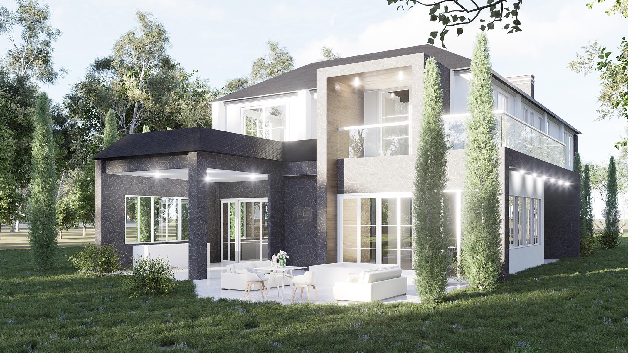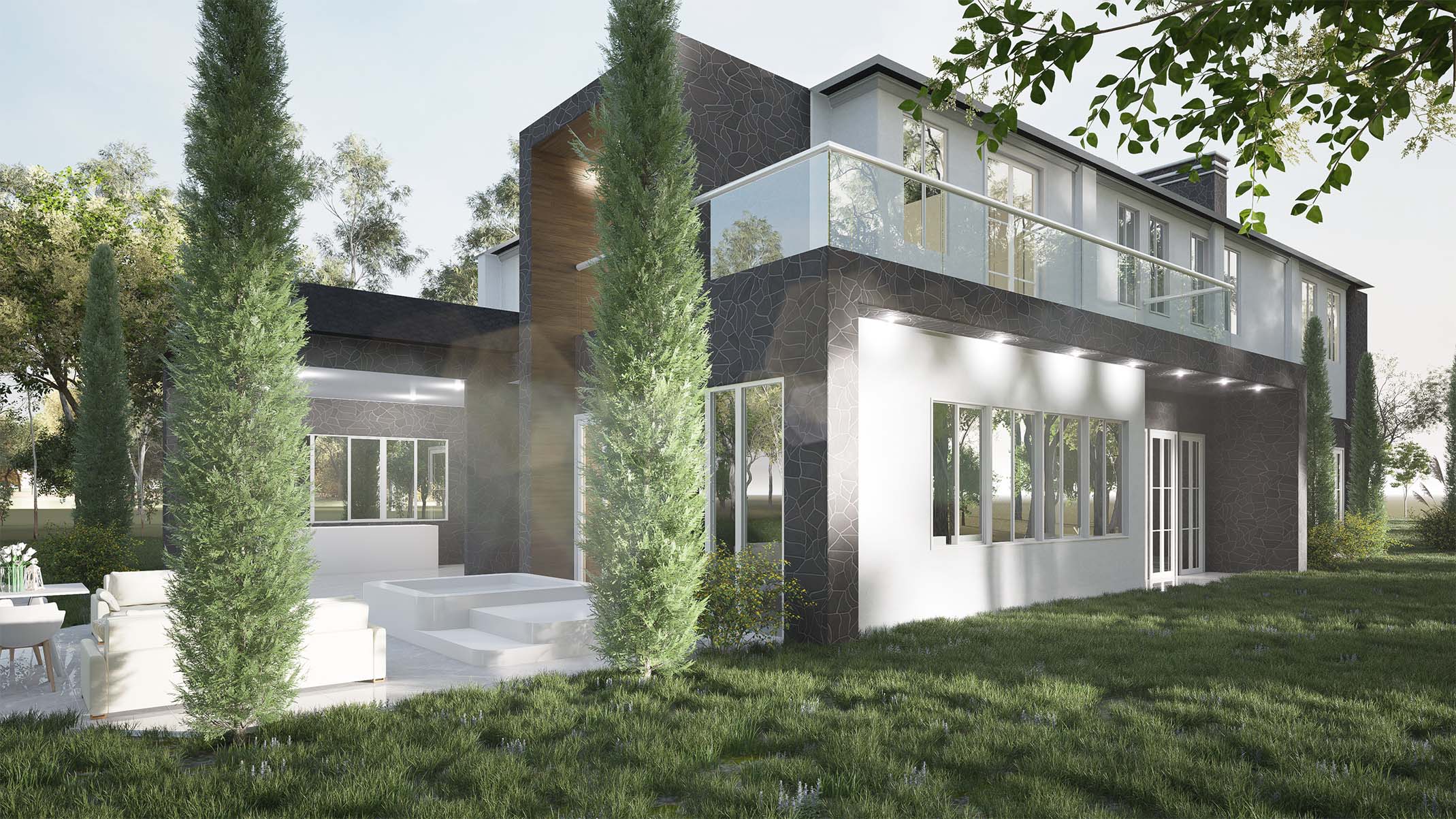 Casa Vilachuaga está diseñada sobre un terreno amplio rodeado de eucaliptos. En el primer nivel se encuentran espacios como una habitación de huéspedes, cinema, despacho, zona de juegos, jacuzzi y un kiosko ideal para el descanso. En el segundo nivel, se distribuyen cuatro habitaciones, terrazas con vistas privilegiadas y un oratorio privado. La fachada se enmarca con piedra negra, acentuando su carácter elegante. Grandes ventanales a doble altura con marcos blancos respetan la estética americana y permiten disfrutar del paisaje de forma imponente. Un diseño que equilibra lujo y naturaleza en perfecta armonía