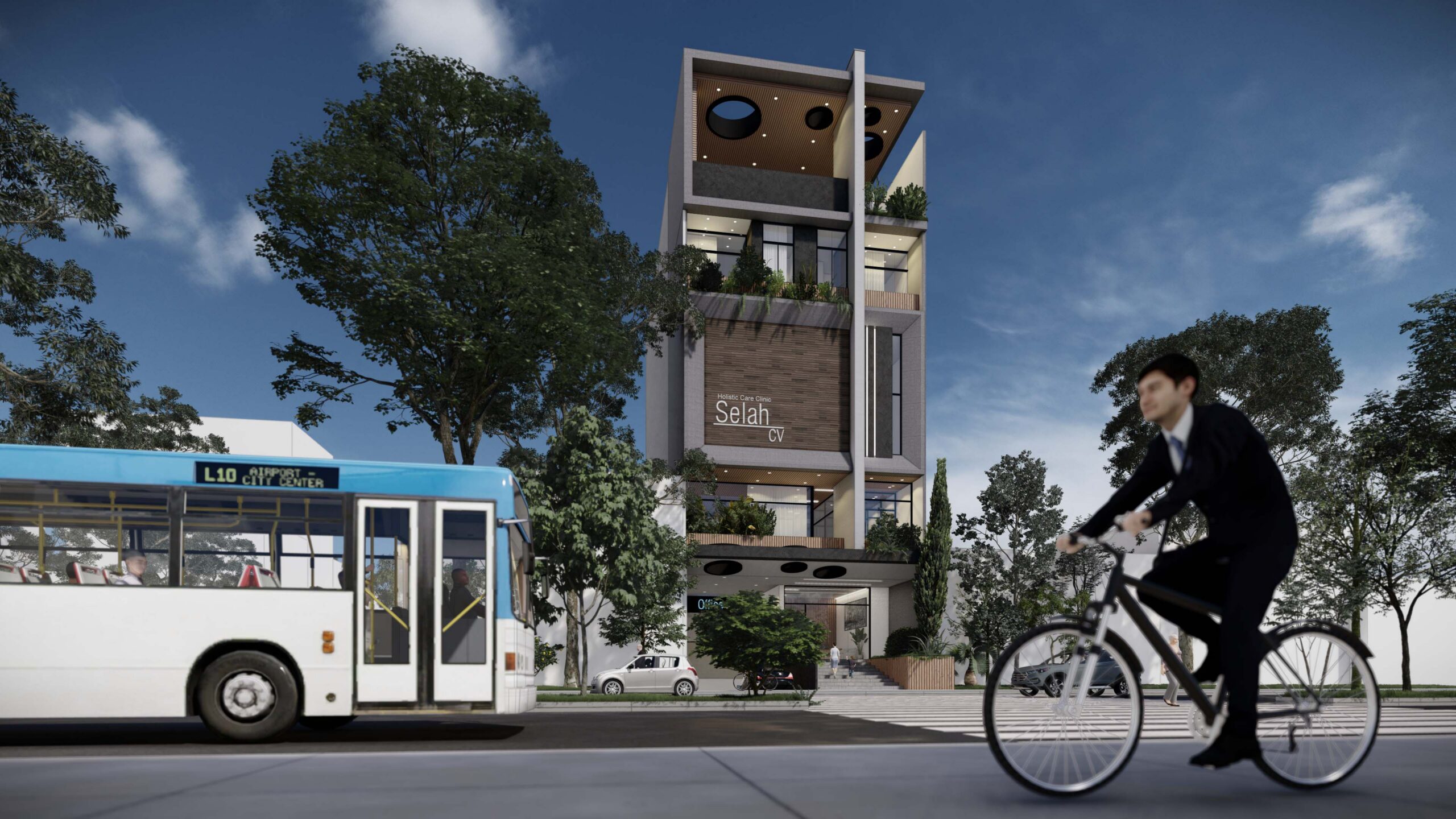 Este centro de cuidado integral combina diseño contemporáneo con criterios bioclimáticos, uso de materiales nobles, y sistemas sostenibles como recolección de aguas lluvias. Pensado como un espacio de desarrollo y sanación, cuenta con gimnasio, piscinas para hidroterapia, auditorios, cocinas, oficinas y apartamentos privados para individuos o familias. La fachada incorpora luces ambientales y cintas LED, reafirmando su carácter icónico y moderno. Selah no es solo un edificio: es un refugio, una pausa en medio del ritmo urbano, que redefine cómo debe sentirse un lugar de alojamiento espiritual y sanador.